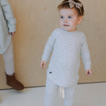 95% Modal 5% Spandex creates the perfectly soft, silky and buttery ribbed fabric that stretches and moves with your active little ones. Cream trim accents and functioning draw string with an elastic waist are all part of these adorable pieces.