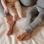 95% Modal 5% Spandex creates the perfectly soft, silky and buttery ribbed fabric that stretches and moves with your active little ones.  Buttery soft and stretch in all directions with  functioning draw string and an elastic waist are all part of these adorable pieces.