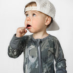 Our same cozy jammies in our custom Camo design. Designed for better sleep and cozy snuggles, our Zipper Jammie is a one piece zipper pajama made from the softest bamboo & 5% spandex for amazing stretch and room to grow. We've added key touches to our zipper pajamas like fold-over feet & mittens, a 2-way zipper, and made them tagless inside so they won’t irritate your baby or toddler’s skin.