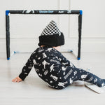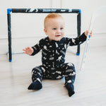 "Dream Big GoalZzz" made from the softest and most breathable bamboo viscose material, your babe won't want to take this off! Designed for all the love and extra snuggles! Sleep and play with zero irritation with our tag-less garment tags! Can't miss our fold over hand cuffs and footie option for the perfect transition to sleep! Easy diaper changes, you got it-made with a double zipper feature. We promise you'll love it!