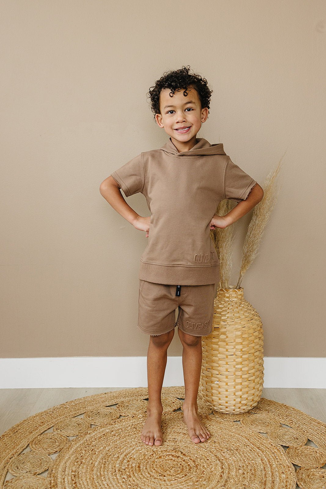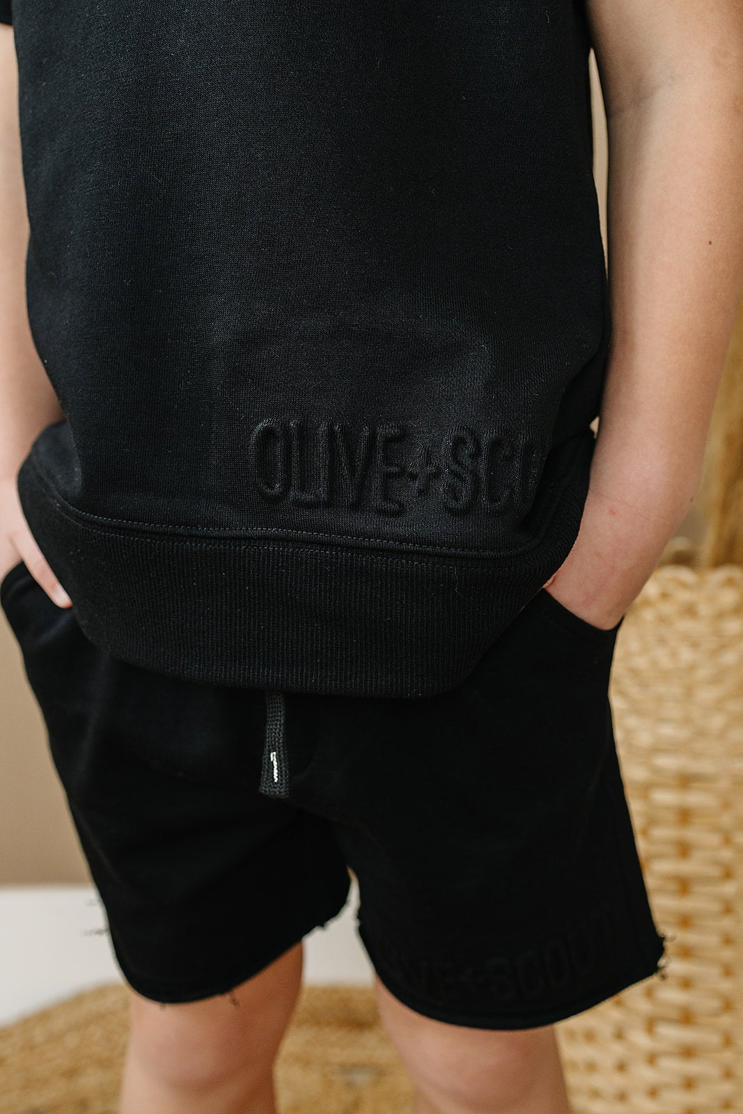 Kick back and relax in the Kash Shorts - the perfect choice for lazy days. Made from lightweight sweat material, these shorts feature a raw hem and functional pockets for ultimate comfort. The elastic waistband and drawstring ensure a perfect fit, while the embossed Olive + Scout logo adds a touch of style.
