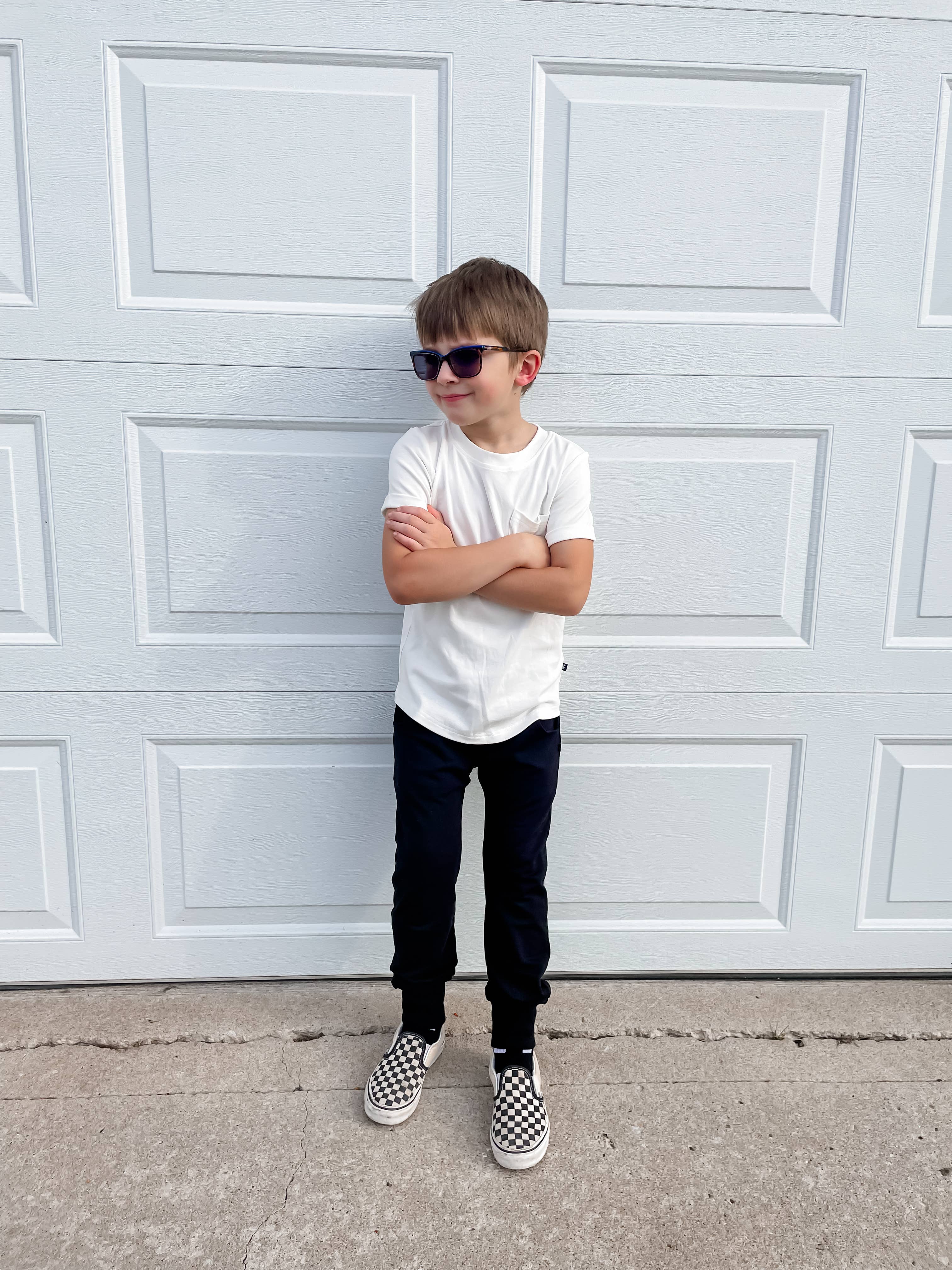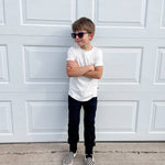 Classic meets edgy with our rad joggers! Whether your little is at school or preparing for a big race, these joggers will keep them comfy and stylish through their adventures! Ribbed + elastic waistband 46% bamboo viscose, 46% cotton, 8% spandex Functional white drawstring. We dressed these up with an accenting drop seam. Functional front pockets (my little man fills them with dirt and rocks) Flint + Fray side tag Ribbed jogger ankle cuff! Too long? Roll it 🤙🏼 Designed in the USA, responsibly made in China.