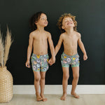 Make a splash at the pool party with our Smile Boardshorts! With super fun drippy smile and checkerboard prints, these boardshorts are sure to be a hit with your little one. And with a comfortable elastic waistband and functional drawstring, they'll never want to take them off!
