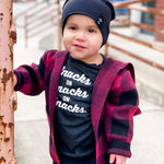 Snacks on Snacks on Snacks! All day...erry day. Let your kid show the world how much he/she is into their favorite meal... Snack time, with this Snacks on Snacks graphic tee by Ledger Nash Co.