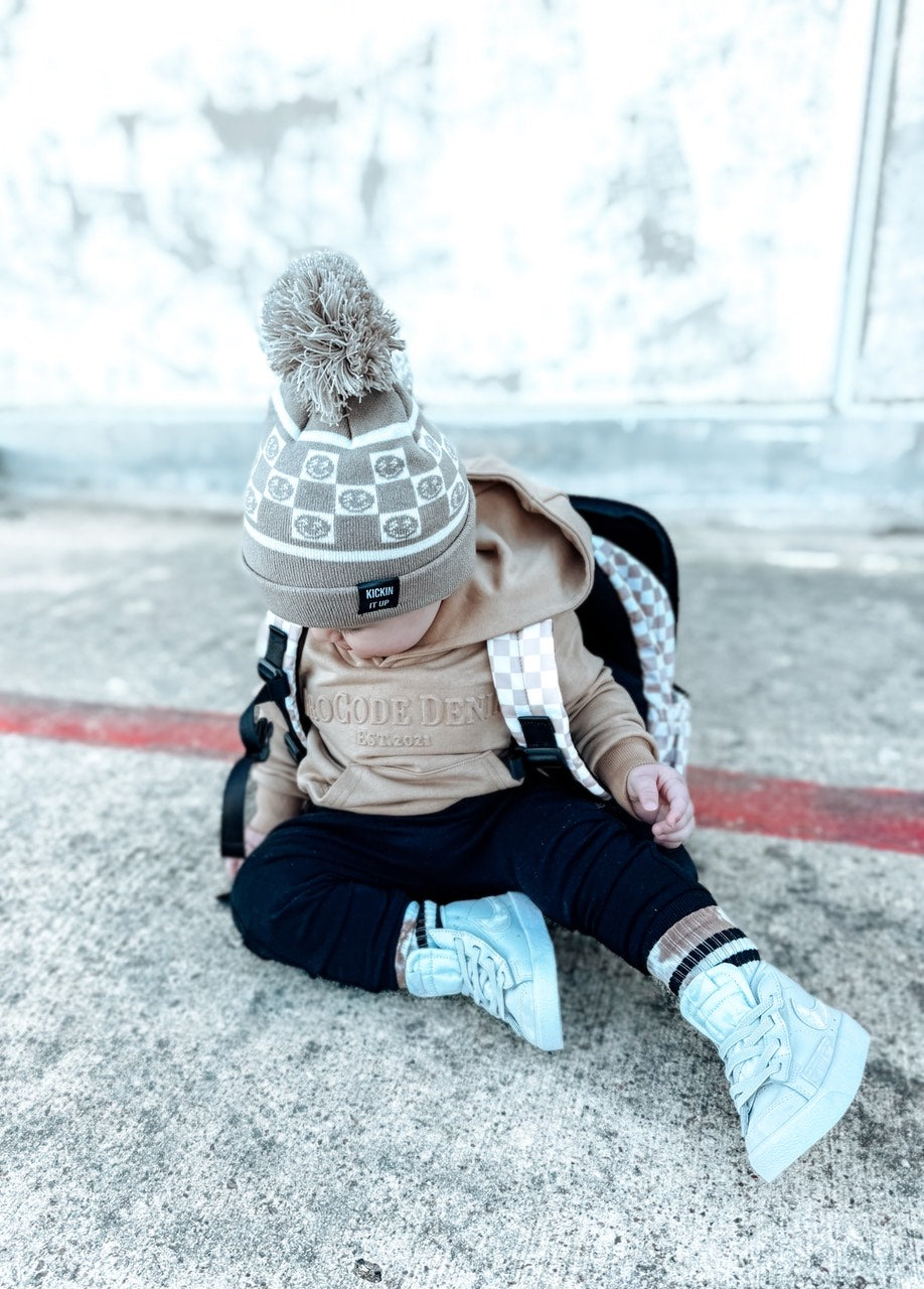 Tan Smiley Check Beanie