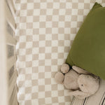 Taupe Checkered Muslin Crib Sheet